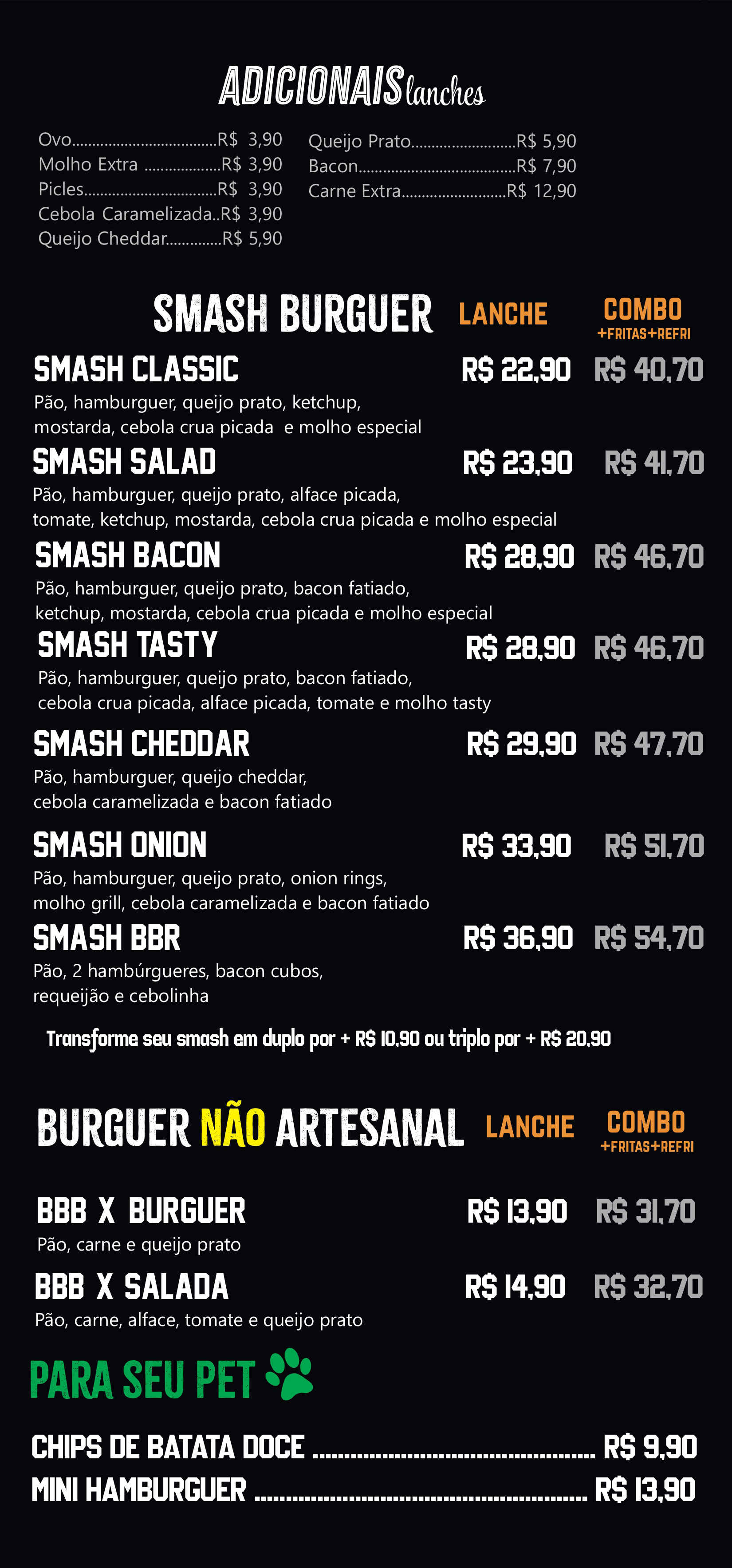 Desfrute de uma explosão de sabores autênticos e irresistíveis, cuidadosamente preparados para satisfazer seu paladar exigente. Nossos hambúrgueres são feitos com ingredientes frescos e de alta qualidade, garantindo uma experiência gastronômica única a cada mordida.